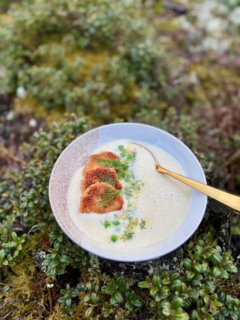 Tämä keitto maistuu koko perheelle! Kylmäsavukala täydentää lempeää sosekeittoa.