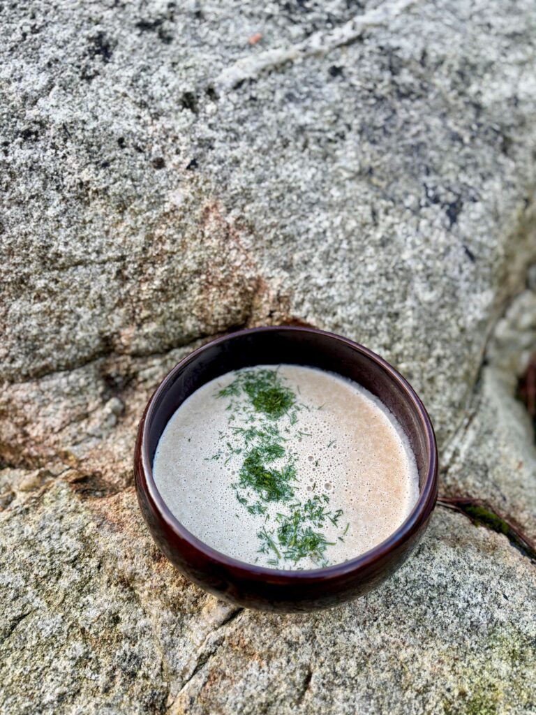 5. Annostele keitto kulhoihin ja lisää pinnalle tilliöljyä.